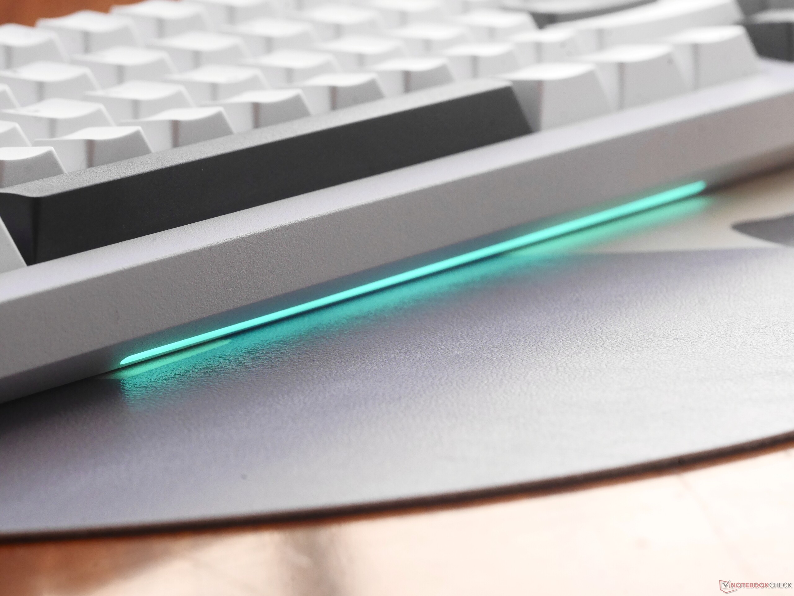 Jämfört med den num pad-touting Galaxy 100 som vi tidigare har granskatoch resten av Galaxy -serien, har Galaxy68 en annan estetik. Borta är de unika MDA-profilknapparna och designdetaljerna med rymdtema, som det dekorativa antennlocket i akryl och accentplattan på fodralet. Istället har vi en vanlig Cherry-tangentprofil och ett vanligt aluminiumhölje med några RGB-accentljus i de bakre hörnen och i nederkanten under mellanslagstangenten.