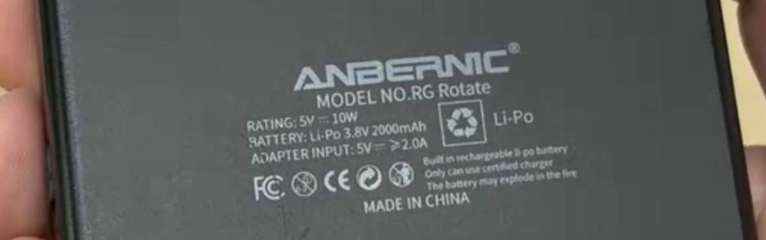 Bilden, som är inbäddad nedan, bekräftar också att RG Rotate kommer att ha ett 3,8V-batteri med en typisk kapacitet på 2.000 mAh. Förvånansvärt nog är detta mindre än batterierna i RG34XX SP eller RG35XX SP (för närvarande $ 69 på Amazon). RG Rotate har dock stöd för 10 W laddning vid 5V/2A. Således bör RG Rotate inte drabbas av samma laddningsproblem som Anbernics billigare handenheter som maxar vid 5V/1,5A.