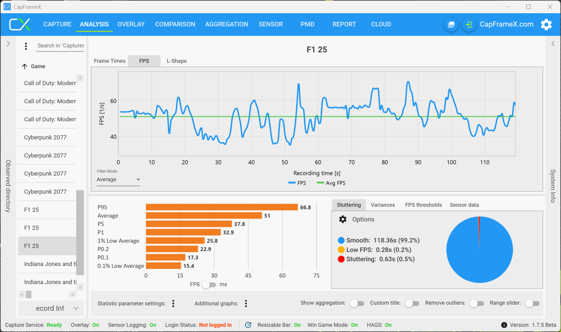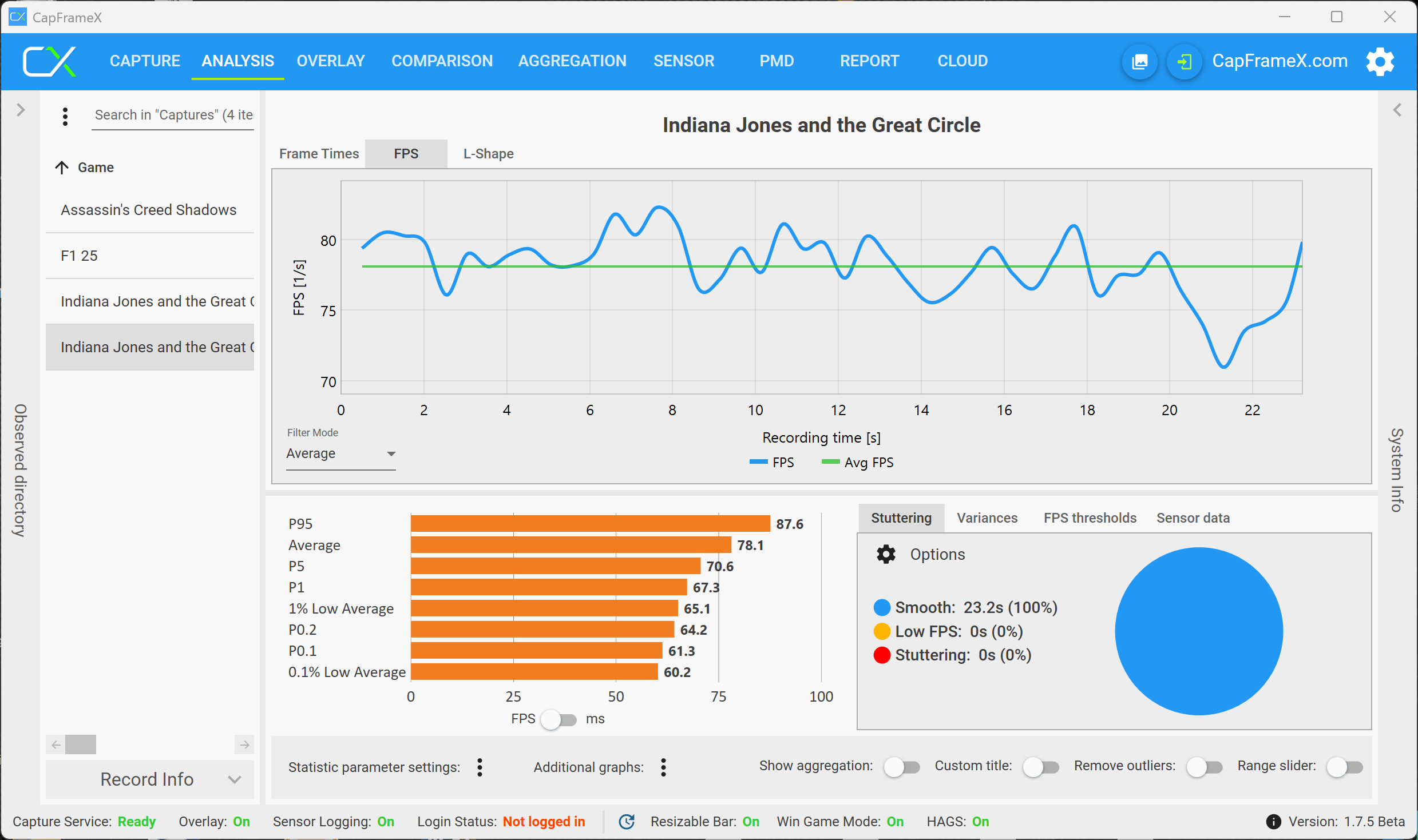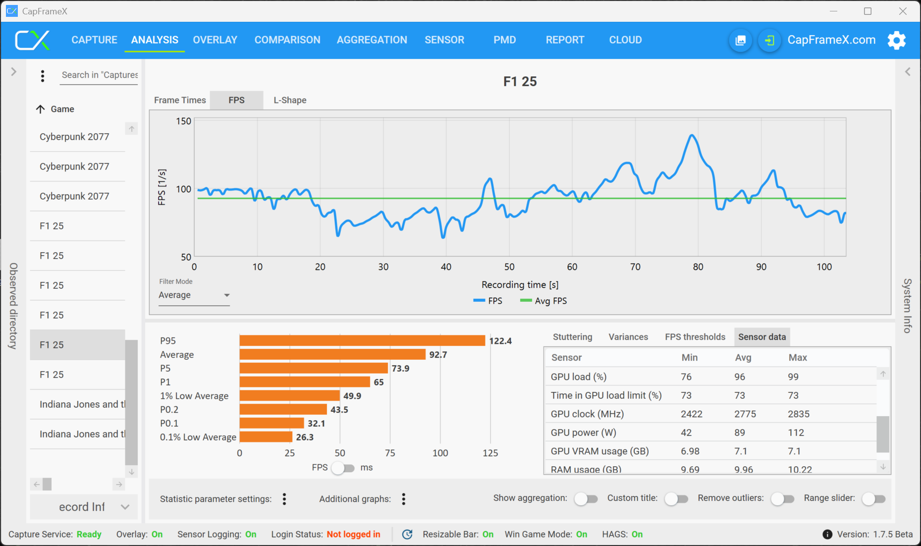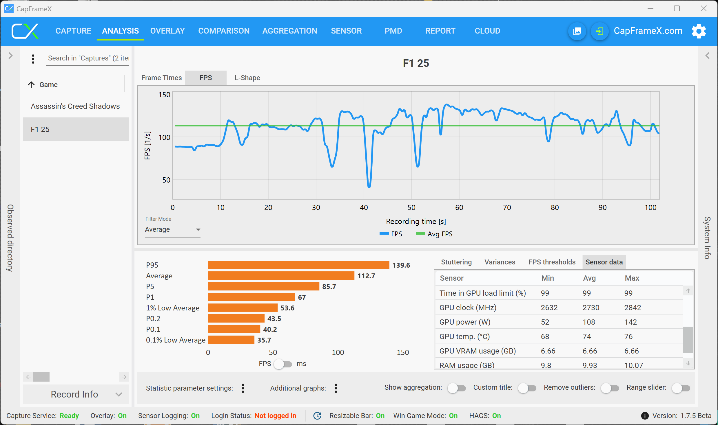Vårt huvudfokus i den här artikeln är dock inte den rena prestandan, utan om den tillgängliga mängden VRAM resulterar i begränsningar när du spelar spel, som stammar eller bildrutor eller prestandaförluster när du spelar under längre perioder. Förutom integrerade riktmärken har vi främst registrerat och analyserat prestandasiffrorna med verktyget CapFrameX. Vi började våra tester med RTX 5070 Laptop (8 GB VRAM) och bytte sedan till RTX 5070 Ti Laptop med 12 GB VRAM när vi märkte problem.