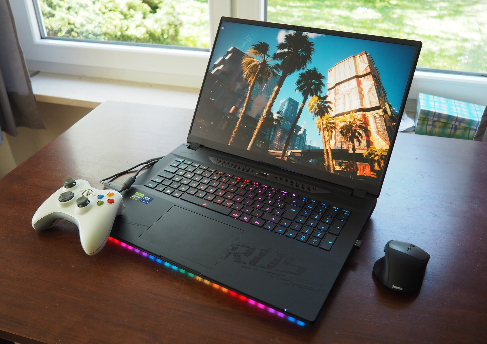 Med sin Raider A18erbjuder MSI en extremt kraftfull CPU- och GPU-kombination, nämligen AMD:s Ryzen 9 9955HX3D och Nvidias GeForce RTX 5080. Dessutom ingår en snabb 120-Hz 4K+ mini-LED-skärm för att glädja användarens ögon. Lagringen är snabb tack vare PCIe 5.0. På minussidan finns inga USB 4-portar, kylningslösningen är högljudd, högtalarna är dåliga och det finns praktiskt taget ingen batteritid att tala om. Dessutom levererar den ljusstarka (470 cd/m²) skärmen mindre än fantastisk färgprecision även efter kalibrering och det är inte möjligt att tillfälligt få de separata belysningszonerna att fungera som en enda. Tangentbordet är åtminstone ganska bra.