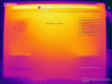 Yttemperaturerna är ganska varma även när datorn går på tomgång eftersom fläktarna tenderar att vara slöa när inga krävande belastningar körs. Systemet är därför varmare än andra Ultrabooks i genomsnitt när du surfar på webben eller spelar video, men de tystare fläktarna är en bra kompromiss.