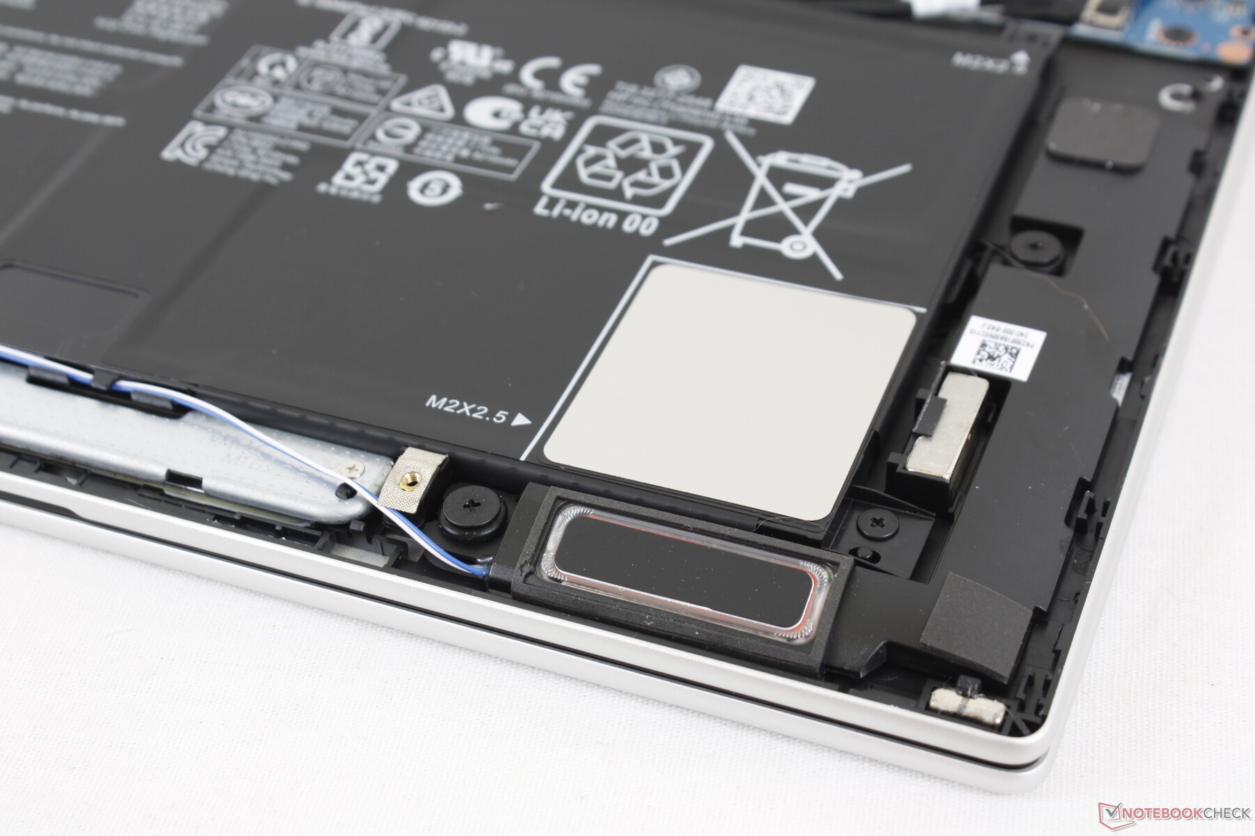 Yttemperaturerna är alltid varmare på den högra halvan av chassit än på den vänstra halvan på grund av hur processorn är placerad inuti. Temperaturskillnaden mellan de kallaste och varmaste platserna kan vara så mycket som 16 C när systemet körs med krävande belastningar. Som jämförelse kan nämnas att de varma platserna på XPS 13 9310 2-i-1 kan nå upp till över 50 C under liknande förhållanden.