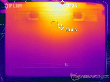 Yttemperaturerna är svalare på den nyare modellen jämfört med den äldre modellen trots att processorprestandan har ökat. Till och med vid tomgång på skrivbordet finns det stora skillnader på cirka 6 C och 7 C på de övre respektive nedre värmepunkterna. Vid extrem processbelastning är tangentbordsvärmepunkterna på båda modellerna ungefär lika stora, 37 C vardera.