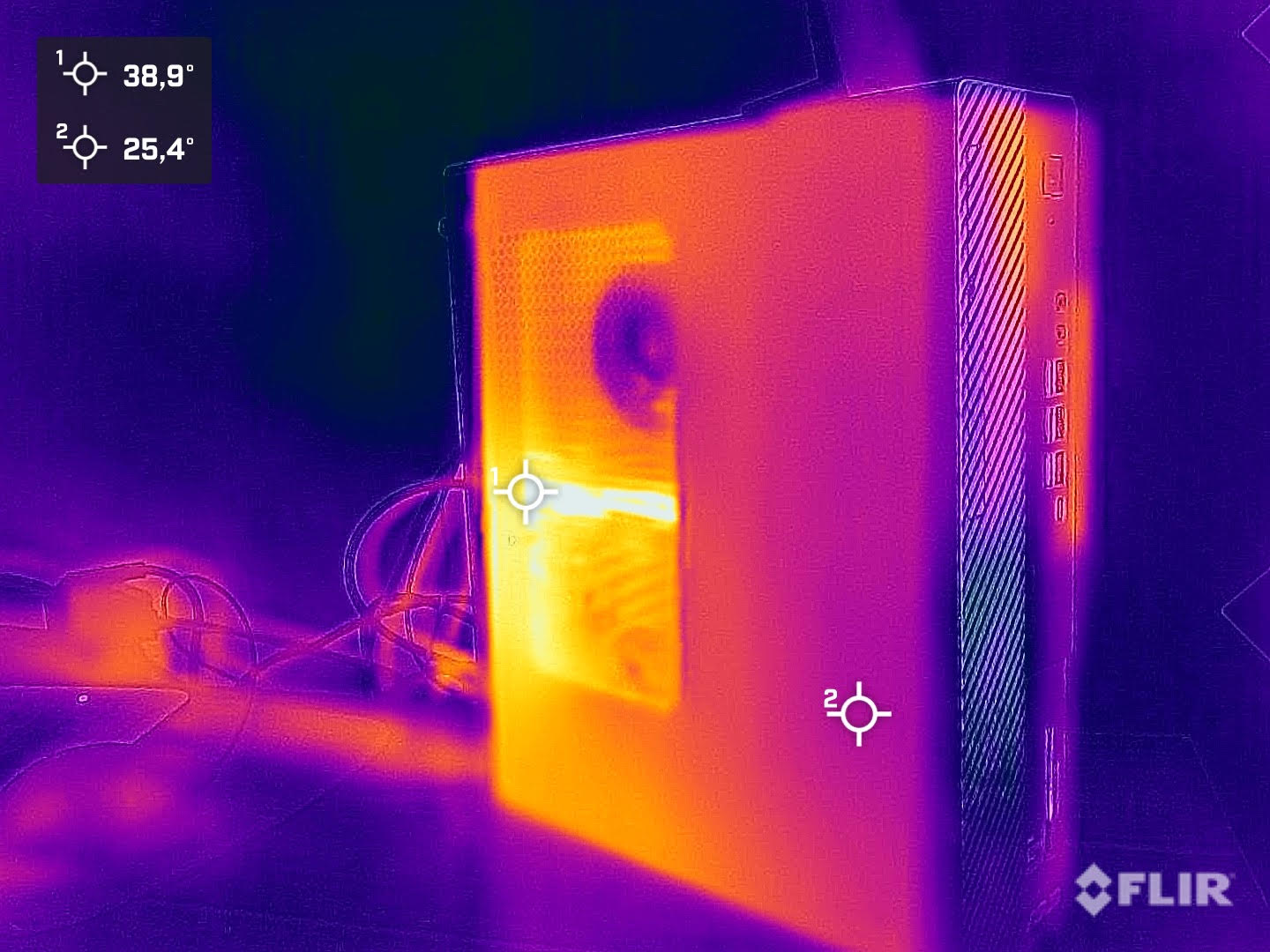 Den största kritikpunkten är den för småskaliga kylningen av processorn. Trots detta är det förvånande att Acer Predator Orion 3000 inte är outhärdligt högljudd. Tillverkaren har förmodligen avstått från högre hastigheter i autoläge på bekostnad av högre temperaturer. En självjusterad fläktkurva kan ge något bättre temperaturer under belastning. De låga ljudemissionerna under belastning hör dock också till det förflutna.