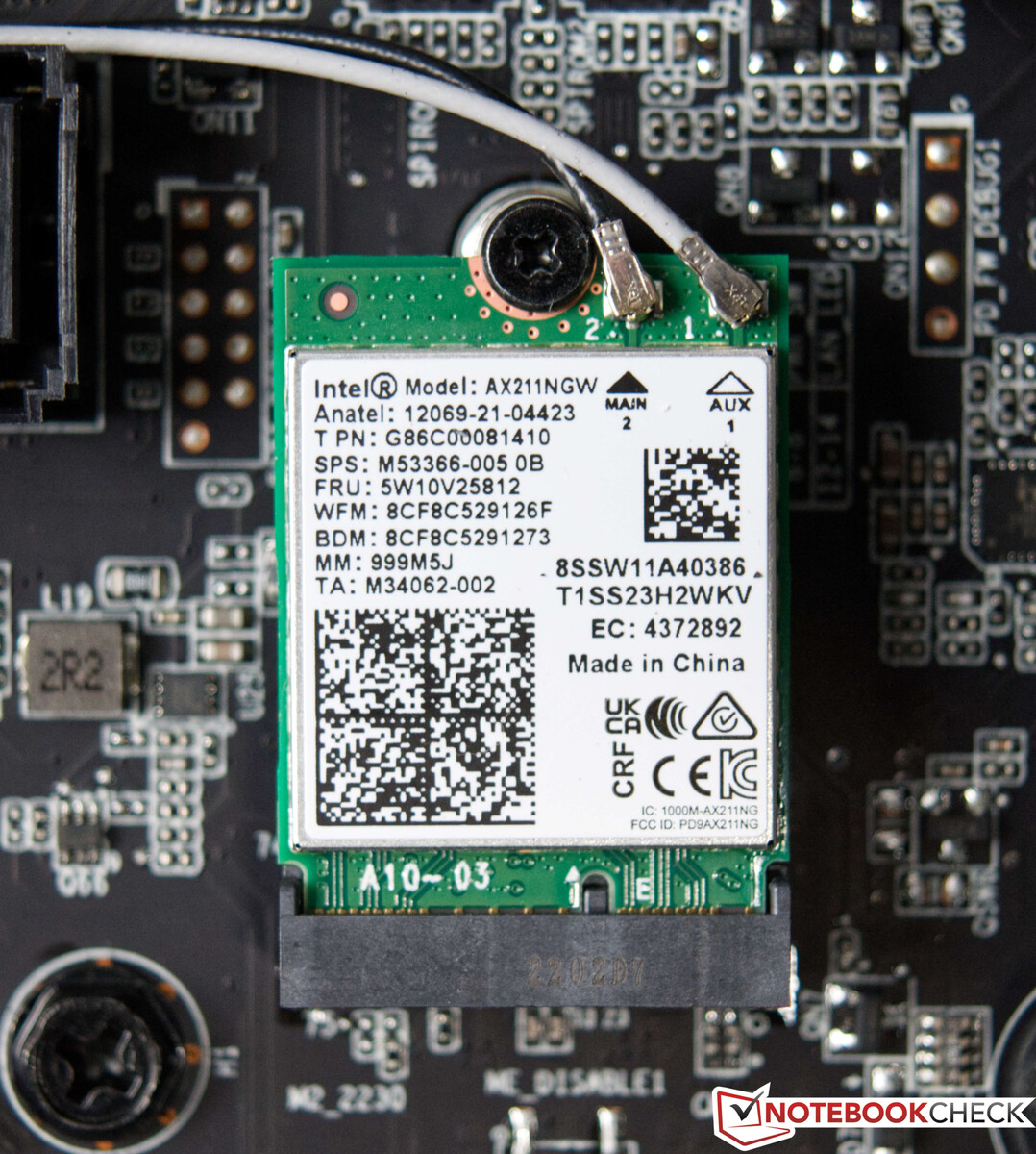 Acer utrustar också Predator med en Intel Wi-Fi 6E AX211-modul. Den är placerad som ett M.2-instickskort direkt på moderkortet och ger relativt bra överföringshastigheter. Intel Wi-Fi 6E AX211:s prestanda vid datamottagning kan dock inte hålla jämna steg med de goda överföringshastigheterna. Jämförelseenheterna levererar delvis bättre hastigheter här. Det vardagliga testet visade dock att man även klarar sig bra med den installerade WLAN-modulen. Vi hade inga problem med att använda den trådlösa anslutningen. Som ett alternativ kan användaren använda en RJ45-port som förlitar sig på ett killer E2600-chip. Tyvärr erbjuder detta endast maximalt 1 GBit/s.