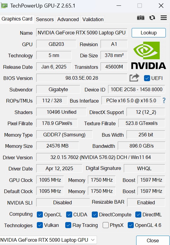 | Razer Blade 16 2025 RTX 5090 (Angelbird AV Pro V60) | |