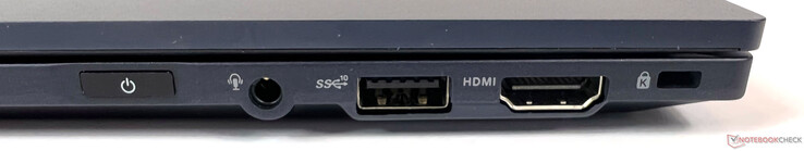 Asus avstår från en LAN-port för att hålla den konvertibla datorn så tunn som möjligt. Trots detta är trådbundna internetanslutningar möjliga via motsvarande port på vänster sida tack vare en medföljande LAN-till-mikro-HDMI-adapter