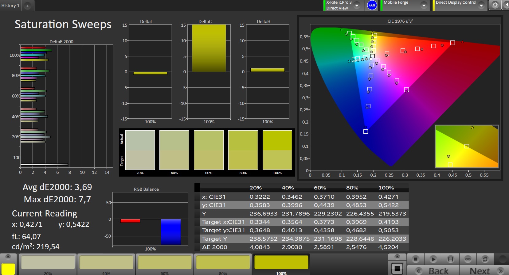| Colorchecker dE 2000 * | 3.97 | 3.97 -0% | 2.4 40% | 2.9 27% | 3.19 20% |