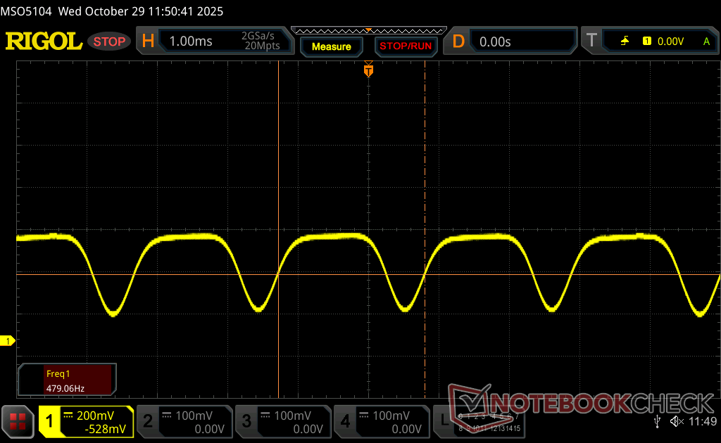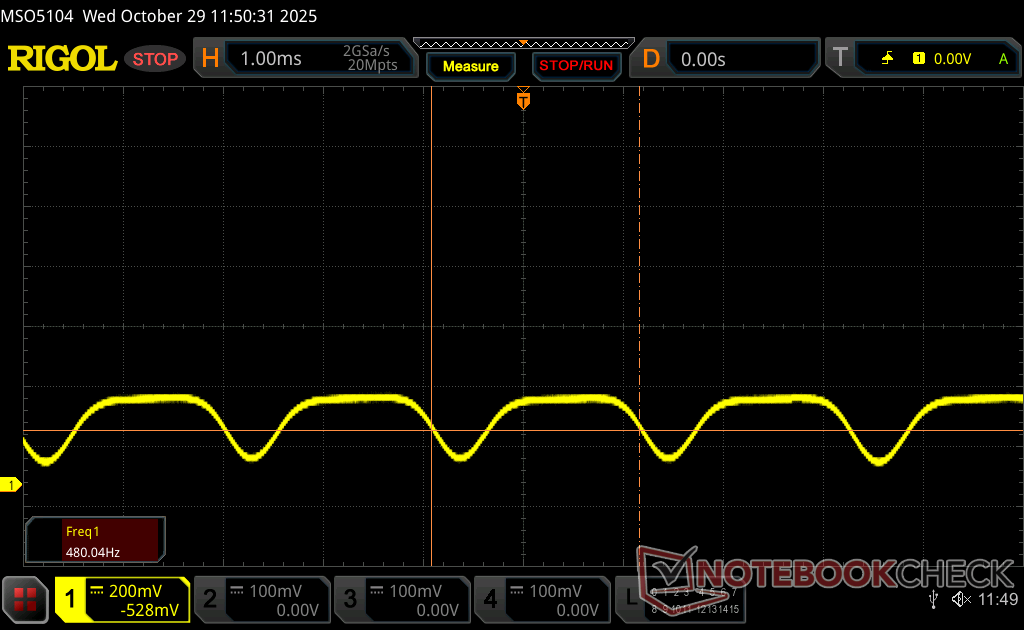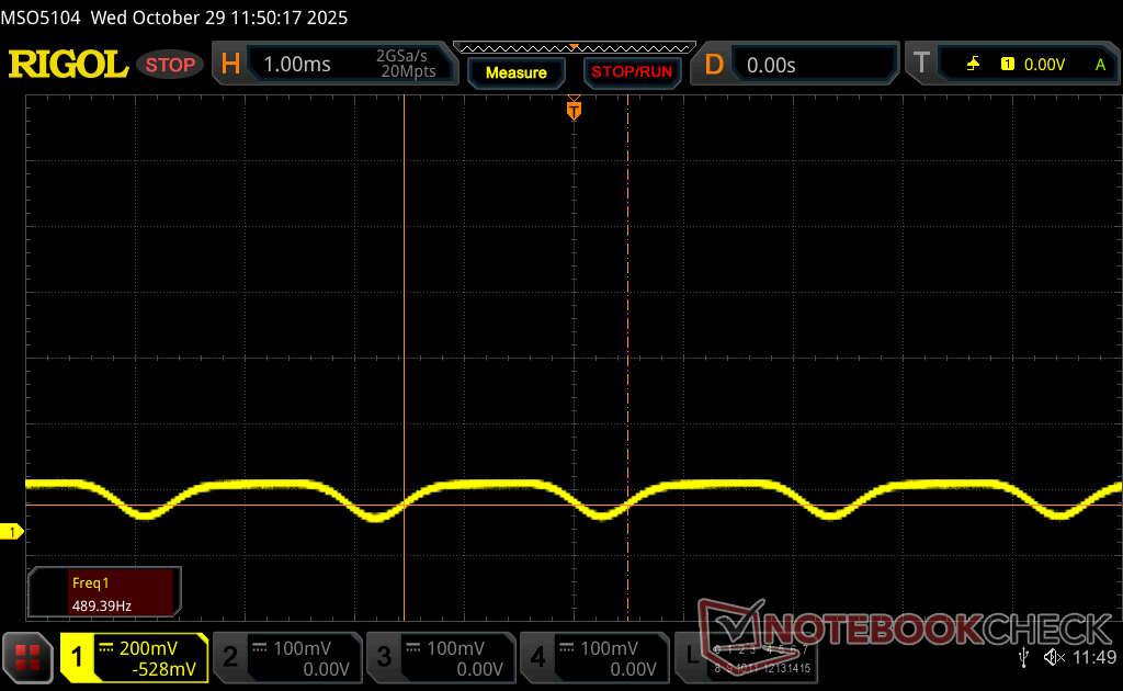 | Skärmflimmer / PWM upptäckt | 490.8 Hz Amplitude: 35 % | ≤ 100 % ljusstyrka inställning | |