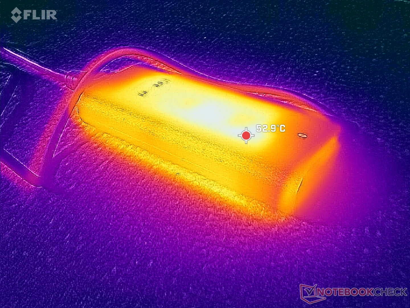 Tomgångskörning på skrivbordet kan dra så lite som 6 W i strömsparläge med iGPU:n aktiv eller upp till 33 W i prestandaläge med dGPU:n aktiv och OLED-skärmen som mestadels visar vita färger (t.ex. när du surfar). Förbrukningen när mer krävande belastningar körs är annars liknande förra årets modell om inte något lägre för förbättrad prestanda per watt, särskilt eftersom Dell 16 Premium levereras med samma 130 W USB-C AC-adapter (~12,8 x 5,5 x 2,3 cm) som tidigare.