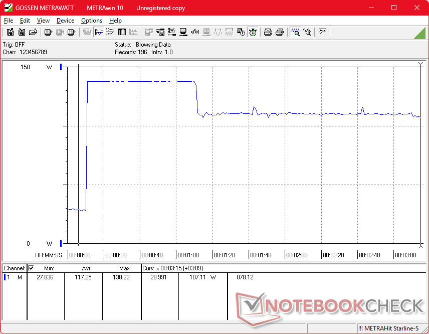 Observera att strömförbrukningen är högre i början av Prime95-stresstestet när Turbo Boost-potentialen är som högst.