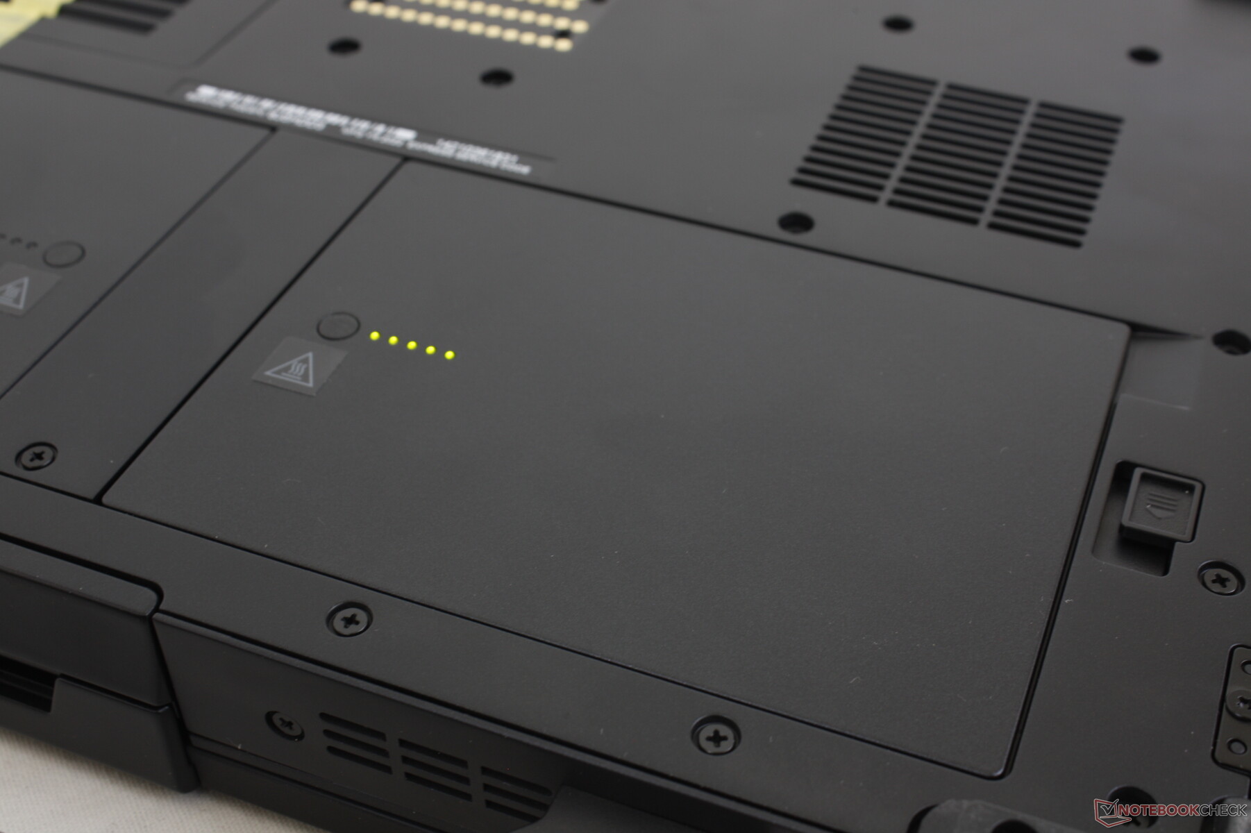 Förvänta dig en verklig WLAN-drifttid på nästan 18 timmar vid 150 nit skärmens ljusstyrka när båda 53,5 Wh-batterierna är installerade. Användare kan köra på bara ett batteripaket för att minska vikten om de vill. Laddningen från tom till full kapacitet är dock relativt långsam och tar över 3 timmar, jämfört med hälften så lång tid för de flesta konsumentbaserade Ultrabooks.