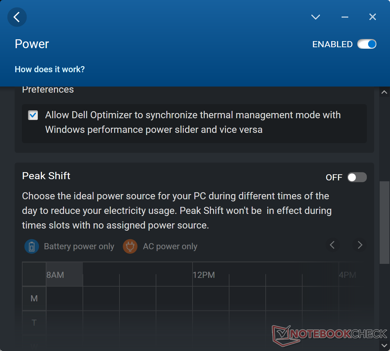 Prestandan är begränsad om den körs på batteri. Fire Strike på batterier skulle ge fysik- och grafikpoäng 18901 respektive 9254 poäng, jämfört med 28197 och 26260 poäng när den körs på elnätet.