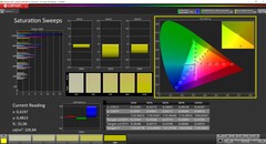 Vi mätte panelen med den professionella CalMAN-mjukvaran (i1 Pro 2) och det finns bara en liten färgsättning i riktning mot grönt/blått i leveranstillståndet, men det kan åtgärdas med vår kalibrering (profilen finns tillgänglig för gratis nedladdning ovan). Den maximala ljusstyrkan sjunker dock med cirka 25 cd/m². Vad vi däremot inte kan åtgärda är de stora färgavvikelserna och tillsammans med den låga färgrymdstäckningen är rimlig bildredigering inte möjlig här. Detta är dock inte Satellite Pros målområde och skärmen är fullt användbar för normala kontorsprogram.