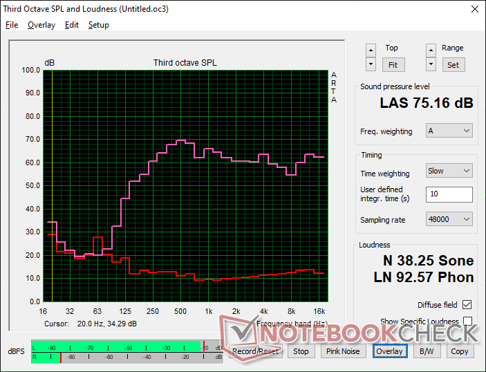 (±) | högtalarljudstyrkan är genomsnittlig men bra (75.2 dB)