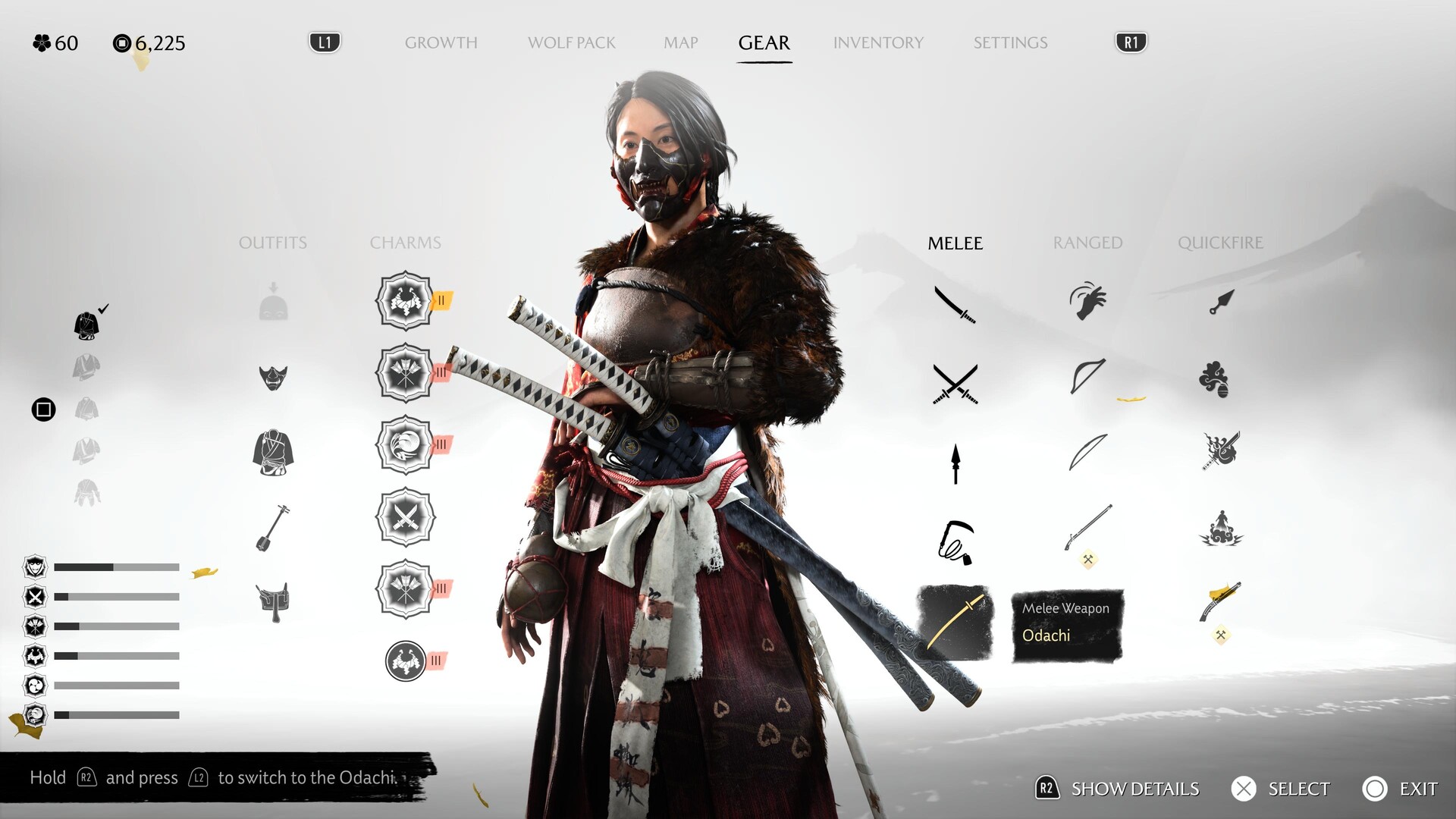 En av de mest anmärkningsvärda förändringarna i Ghost of Yotei är vapenvariationen, ett välbehövligt steg upp från Tsushimas stansbaserade strid. Att balansera flera vapen kan vara knepigt, men ingenting i spelet verkar uppenbart övermäktigt. Vapenbyten är sömlösa och en nödvändig mekanik eftersom fiender ofta har en hel arsenal och vissa vapen är svåra att motverka andra, till exempel motverkas Yari-användare av dubbla Katanas, brutes av Odachi och så vidare. Själva striderna är ganska utmanande, även på vanlig svårighetsgrad. Flera fiender svärmar mot dig och att hålla reda på var och en blir skrämmande. Som standard är möjligheten att låsa på enskilda fiender inaktiverad, och jag rekommenderar starkt att du aktiverar den via inställningarna. Flera aspekter av svårighetsgrad, såsom skador som tas, fiendens upptäcktshastighet och fiendens aggression, kan anpassas per objekt. Tänk på det som en urvattnad version av vad Doom: De mörka åldrarna erbjuder. Pareringar är lätta att bemästra med lite övning. För att få timingen bakad i ditt muskelminne, spela med Bounty Hunter-rustningen som inaktiverar vanliga avböjningar helt och hållet men slappnar av parry-tiderna. Strid på avstånd får en frisk fläkt med införandet av kastbara bomber och en pistol, av någon anledning. Jag var inte så förtjust i det, men din körsträcka kan variera. En sidouppdrag ger dig charm som låter automatiskt headshot fiender med noll ansträngning för det klippvärda 360-no-scope.