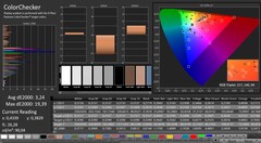 Färgåtergivningen avviker något från målet. Detta är dock inte märkbart. Kalibrering ger endast mindre förbättringar. Dessutom lider panelen inte av en blå nyans. Skärmen kan inte representera färgrymderna AdobeRGB (43 %), sRGB (62 %) och DCI-P3 (42 %)