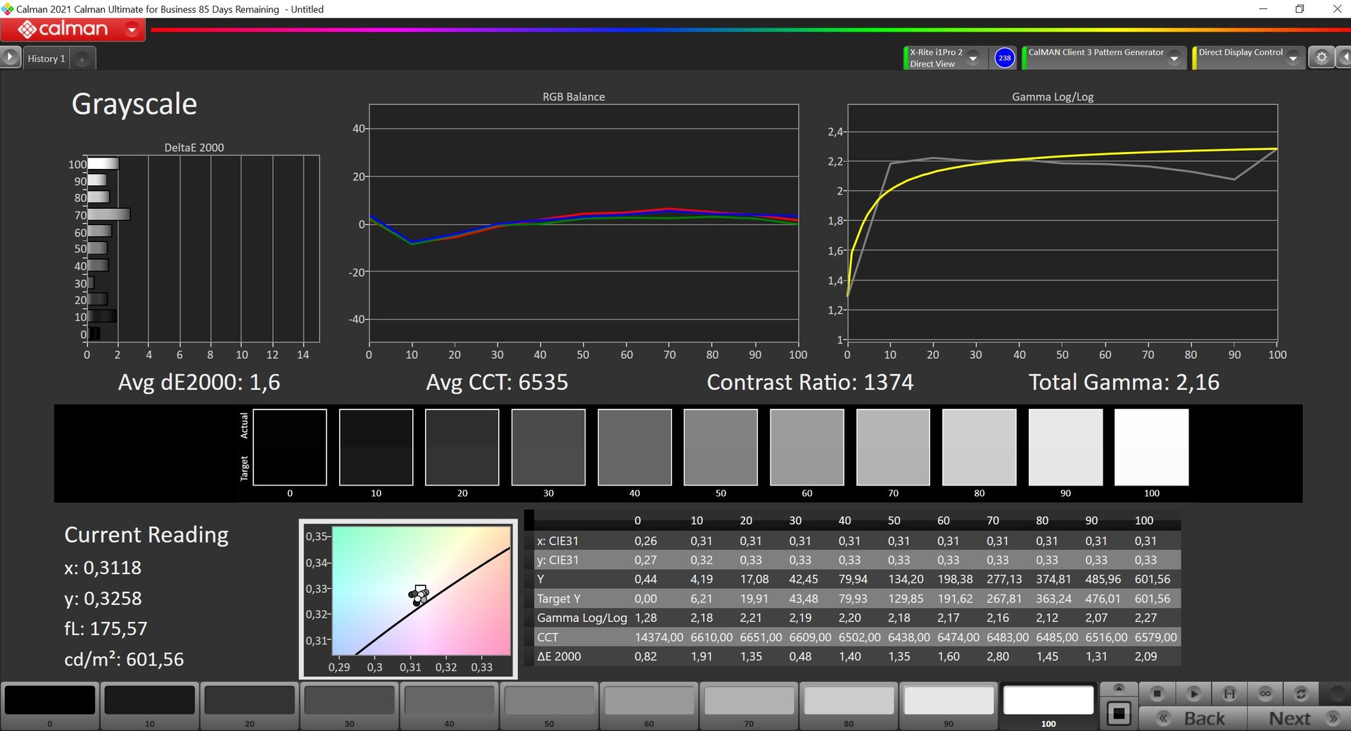 ΔE Greyscale Calman: 1.5 | ∀{0.09-98 Ø5}