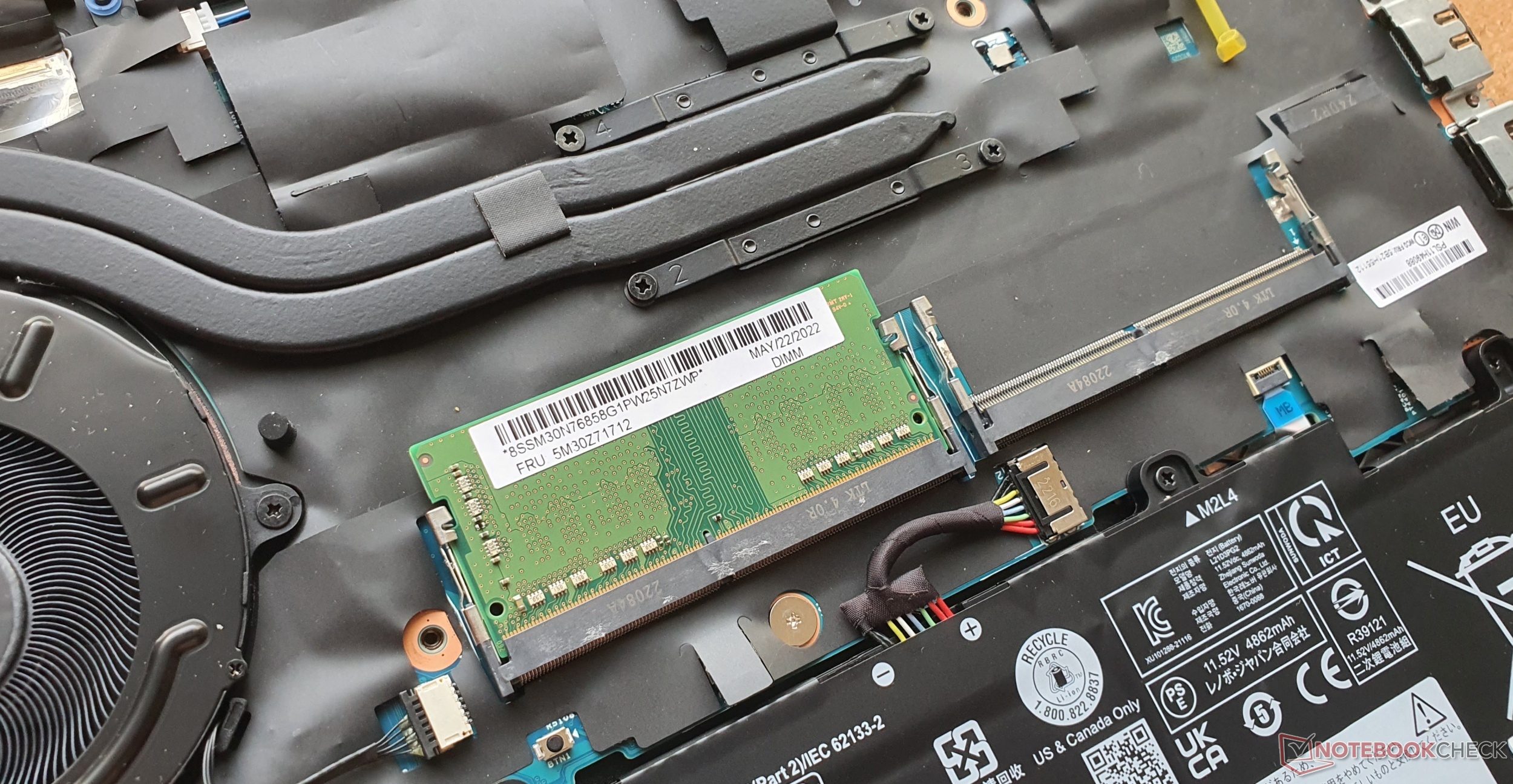Det finns många bra saker om de interna delarna enligt vår mening: två RAM-platser, en avtagbar Wi-Fi-modul, en ledig M.2-plats för WWAN, ett kylsystem som lätt kan underhållas och en utbytbar SSD. Till skillnad från sin föregångare använder L14 G3 en SSD med den kortare M.2 2242-formfaktorn för att rymma det större batteriet (som också är utbytbart). En av USB-A-portarna sitter på ett dotterkort och kan därmed också bytas ut om den går sönder.