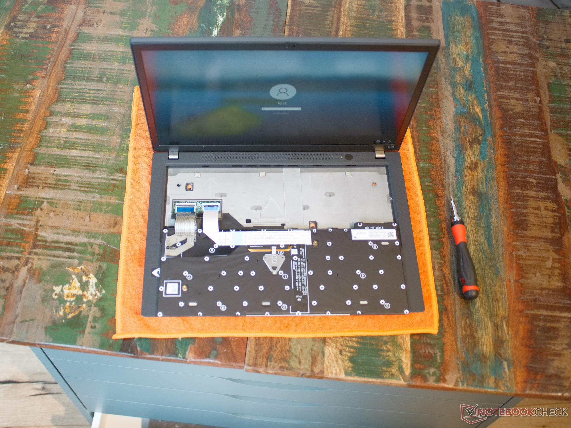 Lenovo tillhandahåller omfattande underhållsmanualer för många bärbara datorer. Manual för maskinvaruunderhåll (PDF) finns också för ThinkPad X13 Gen 3. Enligt manualen är den bärbara datorn lätt att öppna. På insidan hittar vi en avtagbar SSD samt en inkopplad LTE-modul. Arbetsminnet är lödd och kan inte utökas. Tangentbordet på den bärbara datorn är särskilt lätt att byta ut vid skada. Två skruvar på baksidan av Lenovos bärbara dator fäster det