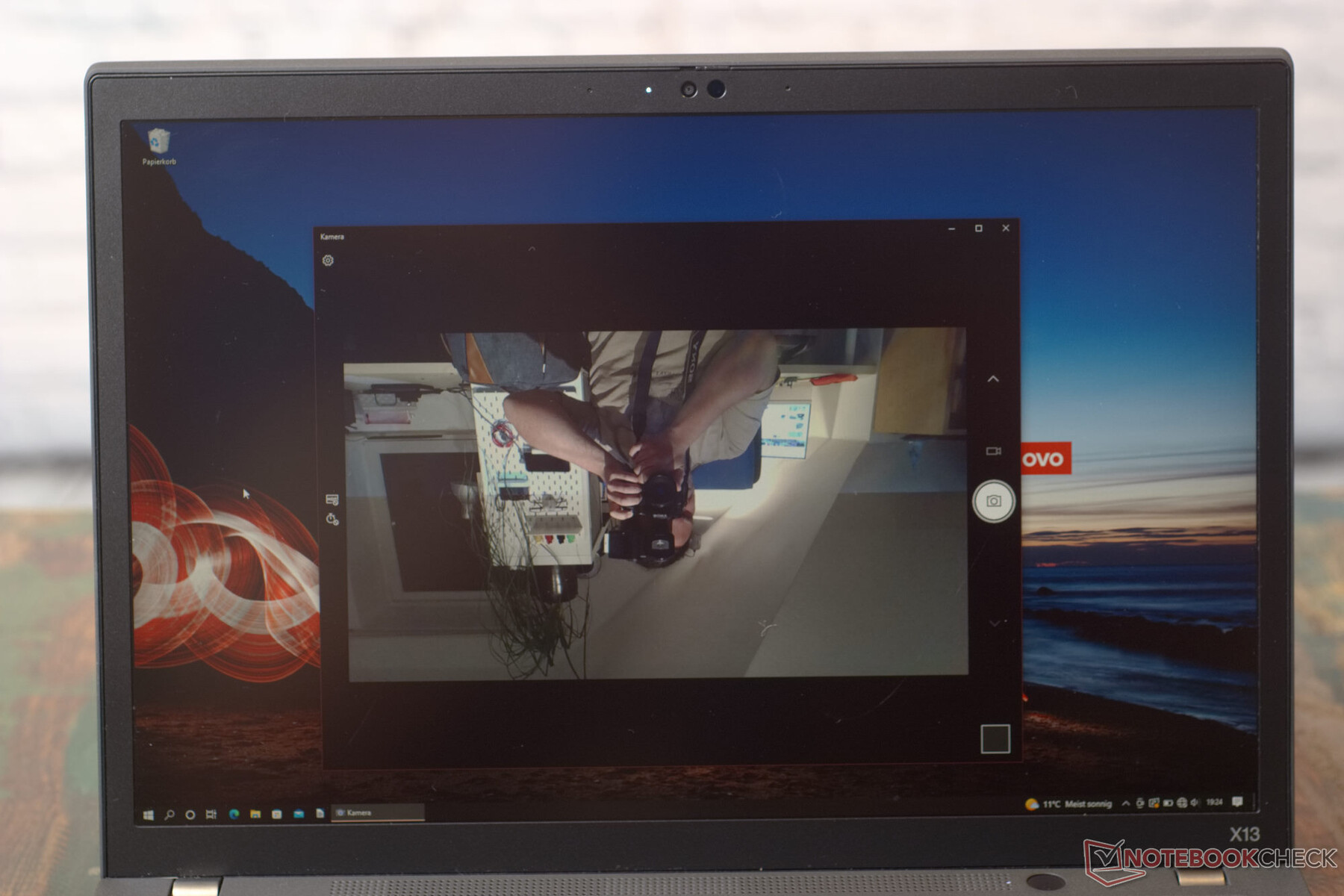 Den Windows Hello-aktiverade webbkameran i Lenovos ThinkPad X13 har en Full HD-upplösning och ger en kontrastrik och skarp bild om belysningen är bra. Linsen här har dock en märkbar fisheye-effekt. Testbilden nedan visar tydligt hur mycket bilden förvrängs mot kanterna. Efter uppdateringen Windows 10 22H2 finns det ett drivrutinfel med webbkameran. Så snart den bärbara datorn slås på från energisparläge är kamerabilden upp och ner. Då fungerar inte Windows Hello via webbkameran längre.