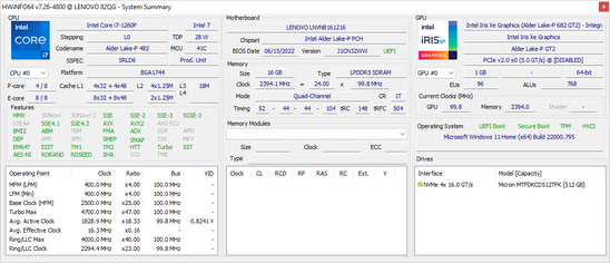 | Lenovo Yoga 7 16IAP7 i7-1260P, Iris Xe G7 96EUs, Micron 2450 512GB MTFDKCD512TFK, IPS, 2560x1600, 16" | Huawei MateBook D 16 2022 i7-12700H, Iris Xe G7 96EUs, Silicon Motion PCIe-8 SSD, IPS, 1920x1200, 16" | Dell Inspiron 16 7620 2-in-1 i7-1260P, Iris Xe G7 96EUs, Toshiba KBG40ZNS512G NVMe, IPS, 1920x1200, 16" | Acer Swift X SFX16-51G-5388 i5-11320H, GeForce RTX 3050 4GB Laptop GPU, Samsung PM991 MZVLQ512HBLU, , 1920x1080, 16.1" | LG Gram 16 (2021) i7-1165G7, Iris Xe G7 96EUs, SK Hynix PC601 1TB HFS001TD9TNG, IPS, 2560x1600, 16" | Lenovo IdeaPad 5 Pro 16ACH R7 5800H, GeForce GTX 1650 Mobile, Micron 2300 512GB MTFDHBA512TDV, IPS LED, 2560x1600, 16" | |