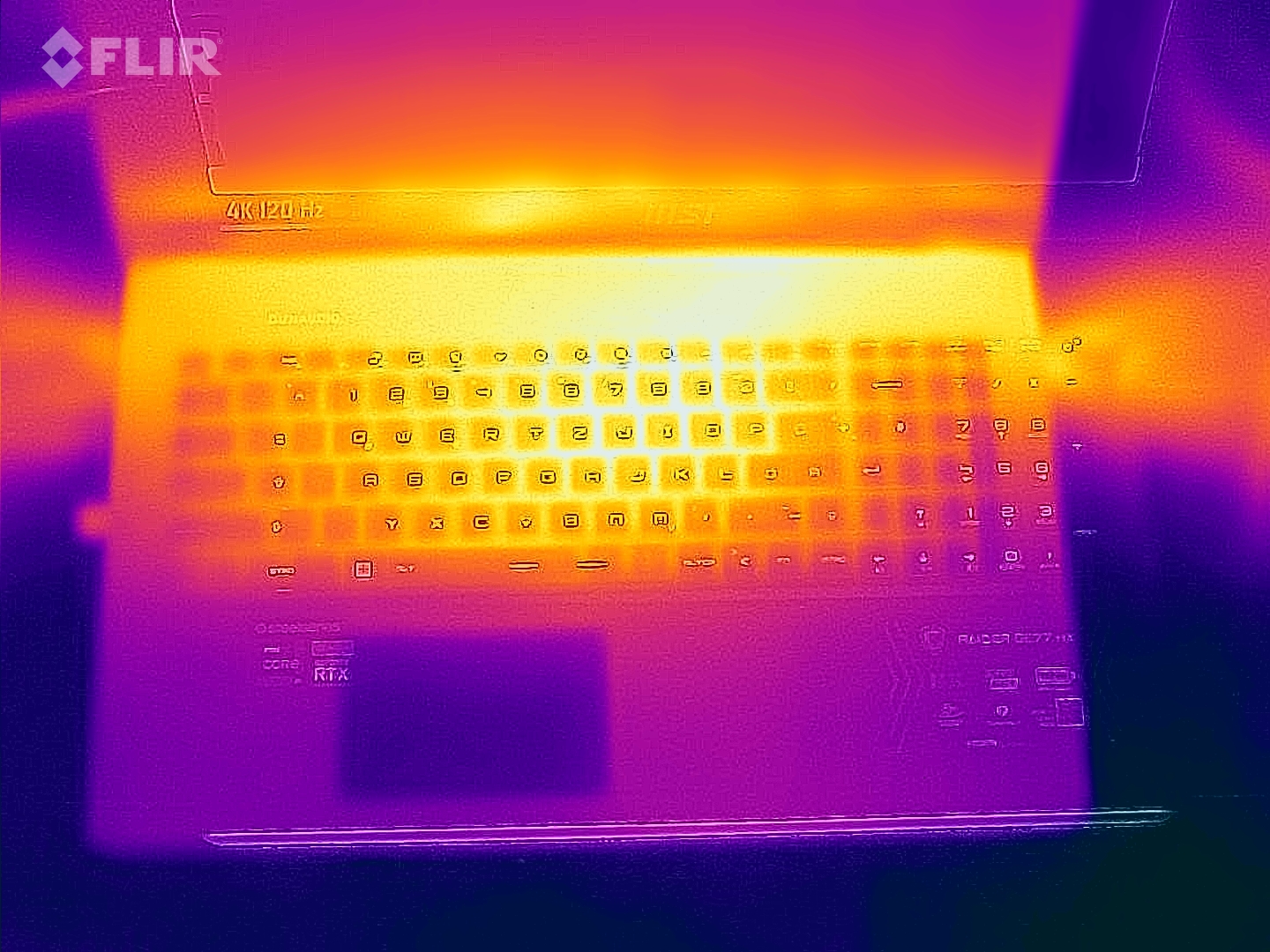 (-) Den maximala temperaturen på ovansidan är 53 °C / 127 F, jämfört med genomsnittet av 40.4 °C / 105 F , allt från 21.2 till 68.8 °C för klassen Gaming.