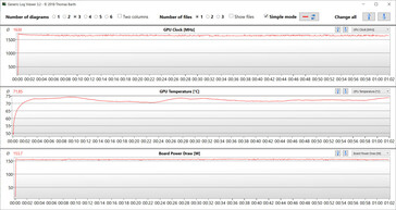 I början av stresstestet (Prime95 och FurMark körs i minst en timme) körs både CPU och GPU på hög hastighet. Därefter sjunker klockfrekvenserna till 1,3 (CPU) och 1100 MHz (GPU). Stresstestet representerar ett extremt scenario. Vi använder det här testet för att avgöra om systemet förblir stabilt under full belastning.