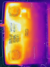 (+) Vid tomgångsbruk är medeltemperaturen för ovansidan 30.8 °C / 87 F, jämfört med enhetsgenomsnittet på 33.9 °C / ### class_avg_f### F.