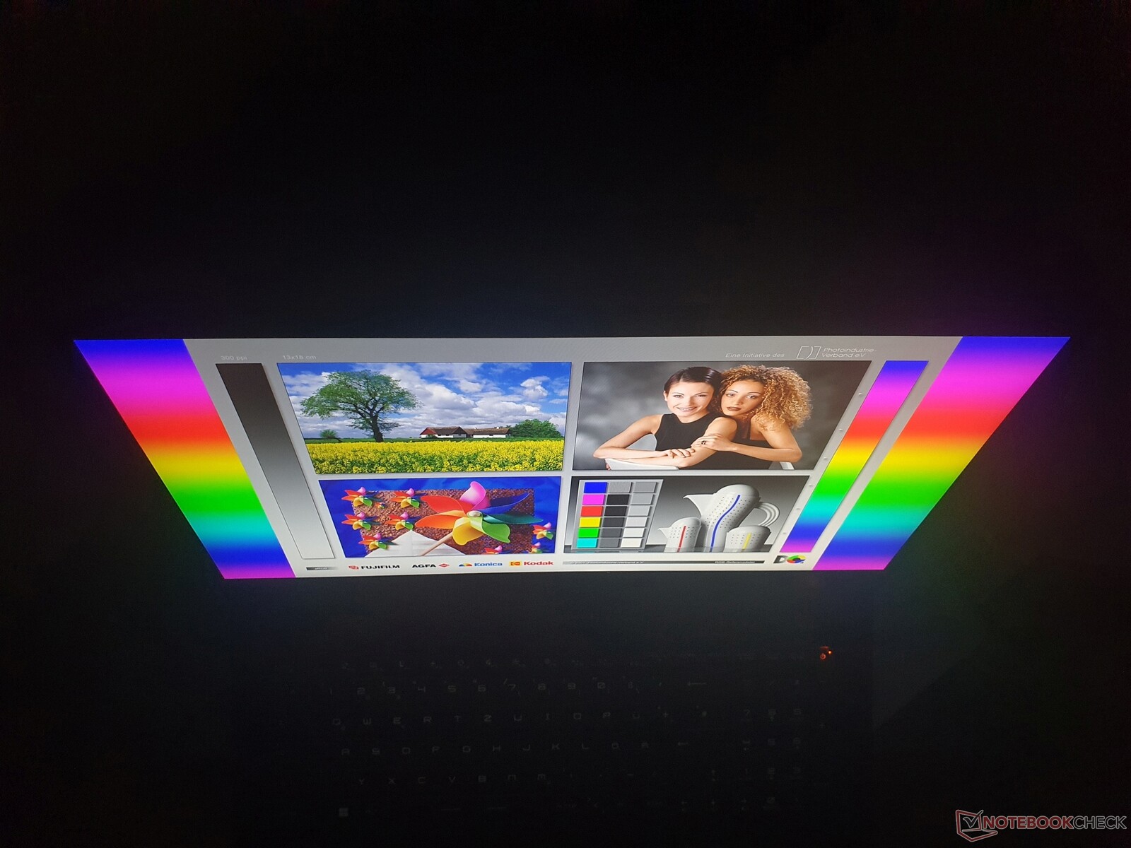 Kontrasten på 1 096:1 är acceptabel, och det goda svartvärdet på 0,25 resulterar i en fyllig svart. Medan jämförelsefältet generellt sett ligger på en liknande nivå, är den mindre Vector GP66 (tillsammans med sin egen föregångare) är ännu ljusare med 324 cd/m². Men Legion 5 Pro och Zephyrus M16överglänser konkurrenterna med knappt 500 cd/m² och är därför också lämpliga för utomhusbruk.