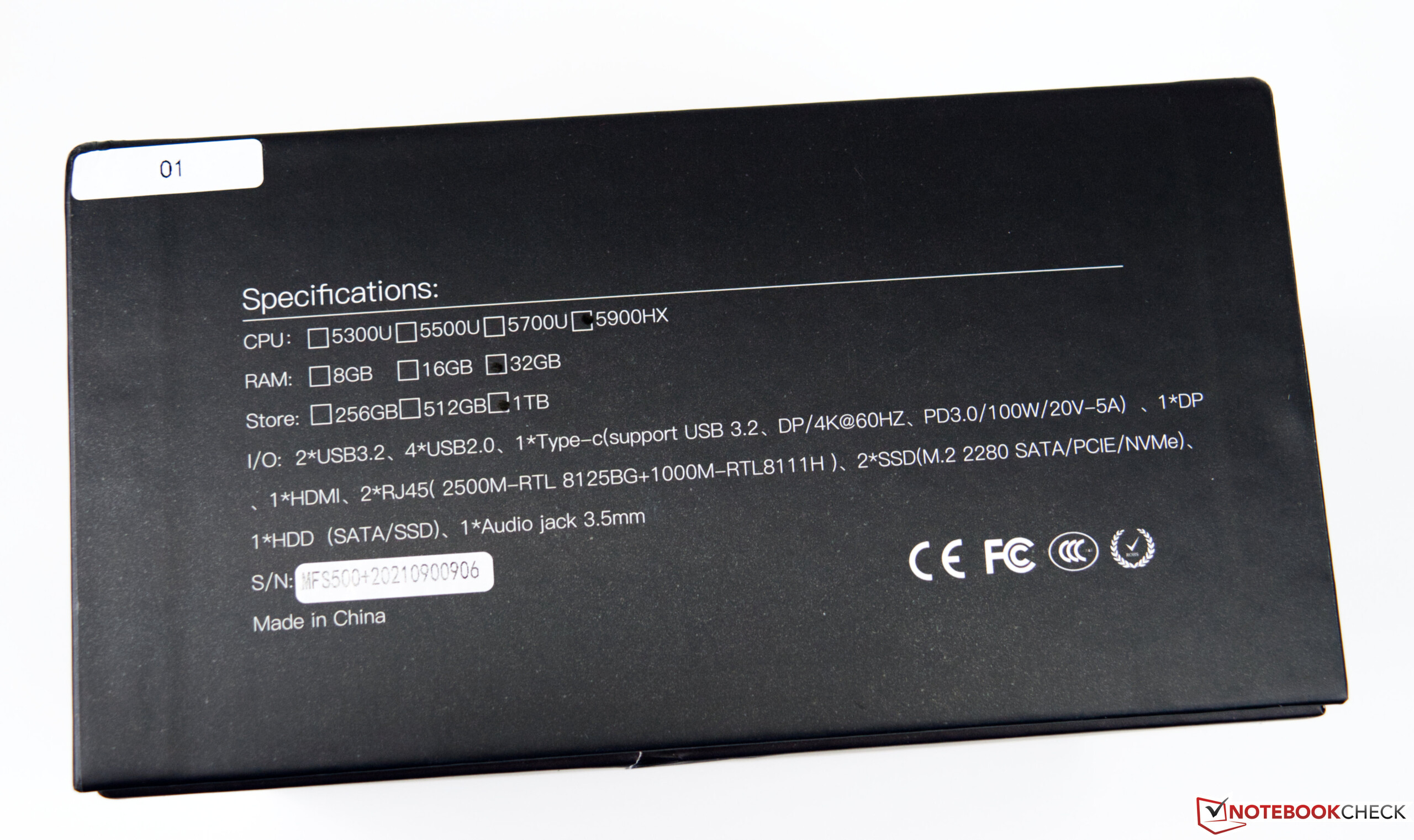 Den mycket höga driftshastigheten gör Morefine S500+ intressant, och samtidigt lämpar sig systemet även för CPU-intensiva uppgifter. Precis som Minisforum följer Morefine samma väg genom att sälja S500+ både som barebone och som förkonfigurerat system med RAM och SSD-lagring. Du måste för närvarande betala 779 dollar för S500+ utan SSD och RAM-minne. Vårt recensionsexemplar med 32 GB RAM och 1 TB SSD kostar 1 099 dollar. Toppmodellen nås dock för 1 225 dollar. Med det kommer Morefine S500+ också med 64 GB RAM samt en 1 TB SSD. Det finns även alternativa CPU-konfigurationer, och de kan hittas på S500+:s förpackning. Den mindre kraftfulla modellen som är baserad påAMD Ryzen 3 5300U börjar på 499 dollar, inklusive frakt till Tyskland och skatter.