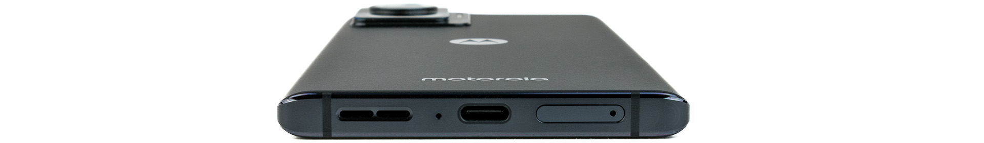 SIM-platsen i botten ansluter nästan sömlöst till ramen och sitter en bråkdel djupare. Motorolas smartphone är IP52-certifierad, vilket innebär att den är skyddad mot att skadliga mängder damm och vattenstänk tränger in. Men den är varken damm- eller vattentät. Edge 30 Ultra finns i färgvarianterna Interstellar Black och Starlight White