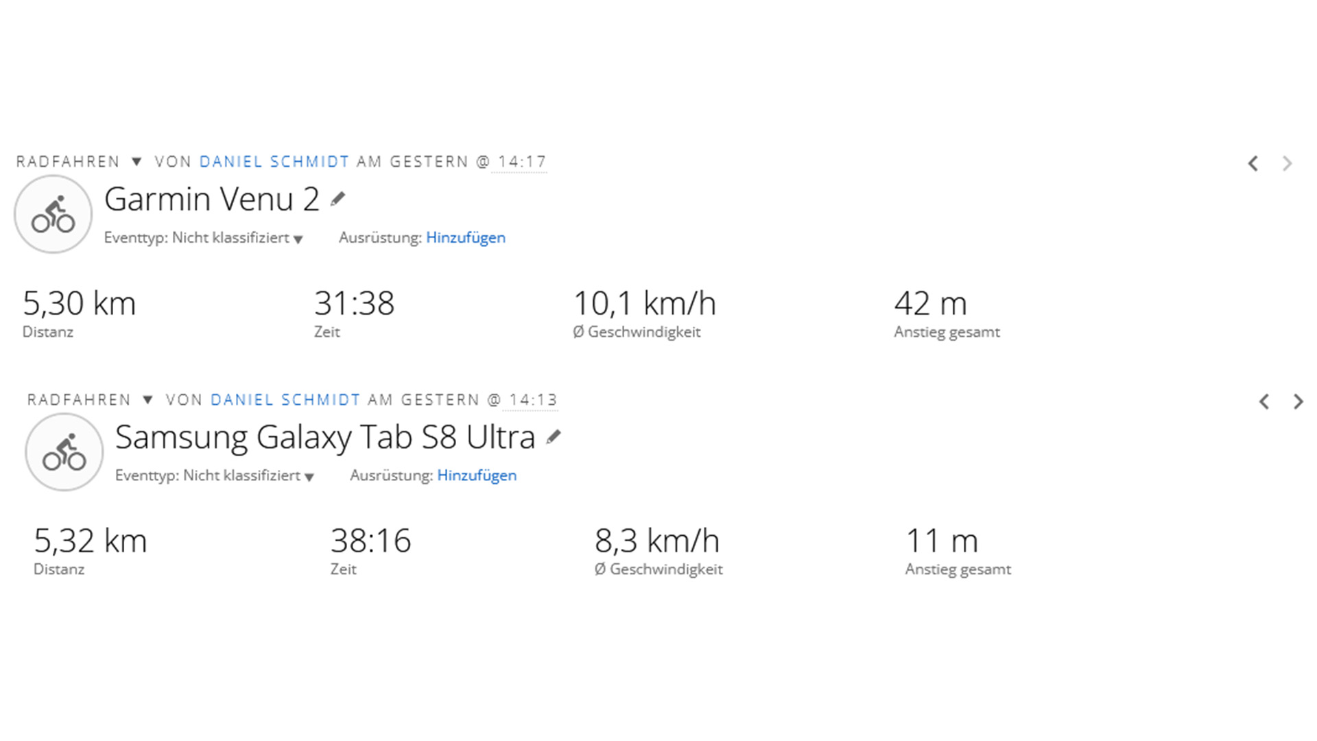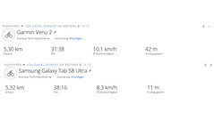 Satellitpositioneringen är mycket snabb och exakt utomhus och ganska bra inomhus. Jämfört med Garmin Venu 2på vår korta testtur med cykeln var skillnaden över hela sträckan endast 30 meter, och en detaljerad registrering nedan visar också en noggrann spårning av den färdväg som täcks.