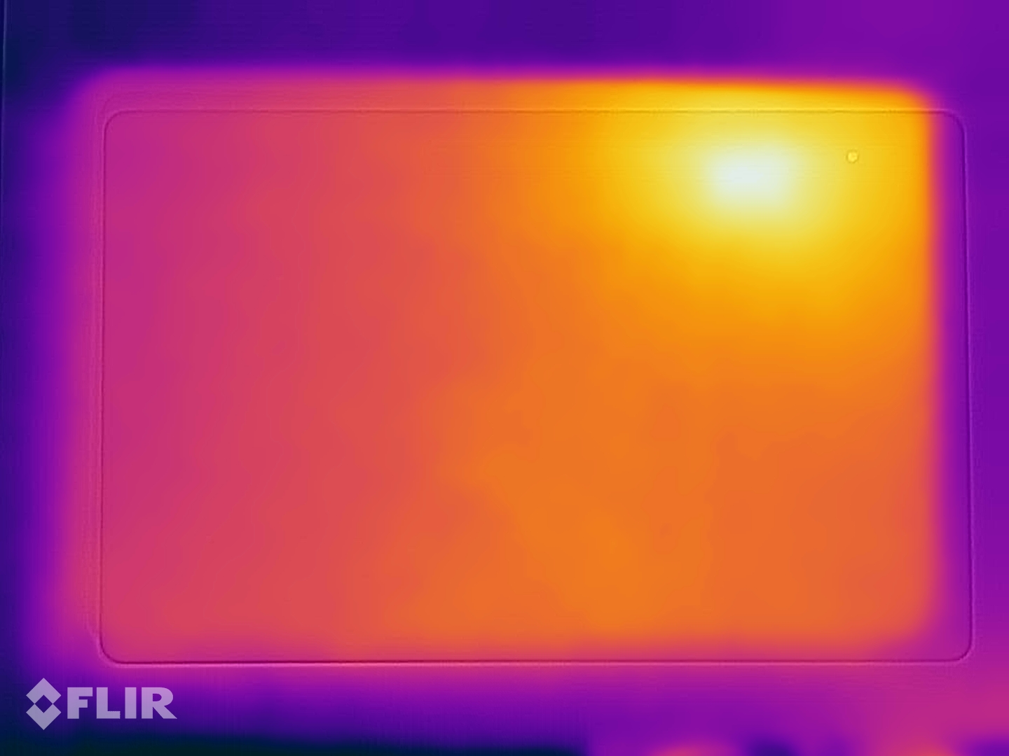 (+) Den maximala temperaturen på ovansidan är 33.7 °C / 93 F, jämfört med genomsnittet av 33.7 °C / 93 F , allt från 20.7 till 53.2 °C för klassen Tablet.