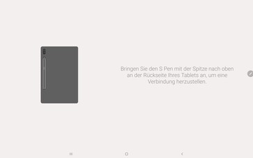 Samsung-tabletten har en aktiv S Pen med Bluetooth-funktionalitet. Alla kända funktioner och gester stöds och fungerar endast när pennans batteri är laddat. Om batteriet är tomt kan pennan endast använda funktioner som inte kräver Bluetooth. I testet utmärkte sig pennan genom sin höga precision.