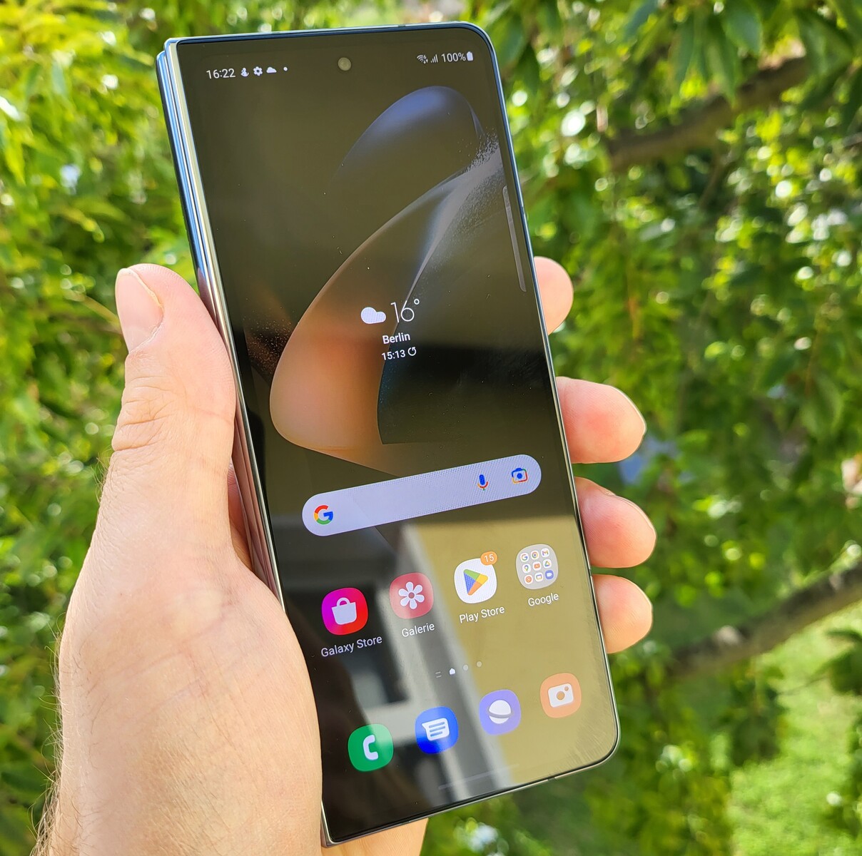 Tack vare uppdateringsfrekvensen på 120 Hz visas ändrade bilder eller rullande webbplatser mycket smidigt. Innan man köper en Fold4 bör dock alla potentiella köpare vara medvetna om att 7,6-tumsskärmen med sitt ovanliga sidoförhållande är mindre lämplig för appar för sociala medier. Dessutom visas mobila sidor i webbläsaren ofta med en konstig storlek. Produktivt arbete i delad skärm-läge kräver också en viss tid att vänja sig vid, eftersom den nästan kvadratiska skärmytan delas upp i två mycket höga arbetsytor.