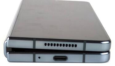 Vid en första anblick ser Z Fold4 knappast annorlunda ut än sin föregångare. Den vikbara smarttelefonens nykonstruerade gångjärn minskar dock vikten minimalt till 263 gram (~9,28 oz), och det gör det också möjligt för Samsung att hålla det IPX8-certifierade fodralet något smalare. Men med nästan 16 mm är Fold4 fortfarande betydligt tjockare än en Xiaomi Mix Fold 2på 11 mm (~0,43 tum). Det finns också fortfarande inget integrerat S Pen-uttag som i den Galaxy S22 Ultra.