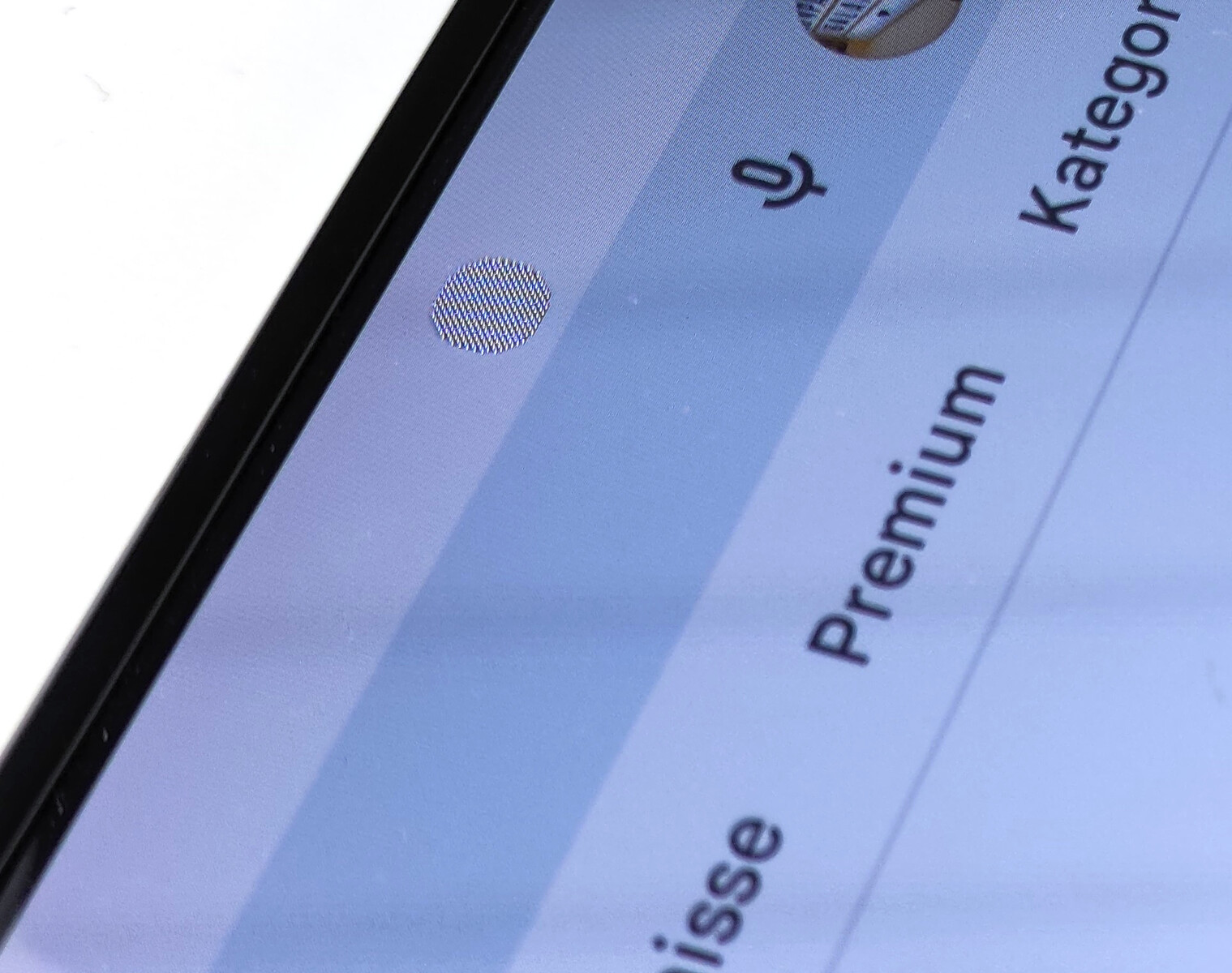Även om användarna fortfarande inte bör misshandla den vikbara surfplattans inre display med spetsiga föremål som t.ex. nycklar, lovar Samsung med den fjärde generationen av Fold-serien mer robusthet. Medan den fortfarande har den Armor-aluminiumram som är känd från föregångaren och Gorilla Glas Victus+ på fram- och baksidan, är den flexibla dynamiska AMOLED-panelen nu också täckt av ett nyutvecklat ultratunt glasskikt, som enligt tillverkaren ska vara upp till 45 procent mer robust. Med sitt nya mosaikmönster ser Fold4:s kamera under displayen (UDC) mindre irriterande ut än föregångaren, men den är fortfarande synlig. Om man tittar på mitten av skärmen är den väl integrerad i bildvisningen, men när man tittar närmare på den är området med de tunnare subpixlarna lätt att märka, särskilt med en vit bakgrund. Även om den här lösningen är mer diskret jämfört med ett stanshål hade ett ännu tjockare pixelgaller ovanför kameran varit bättre för OLED-panelen.
