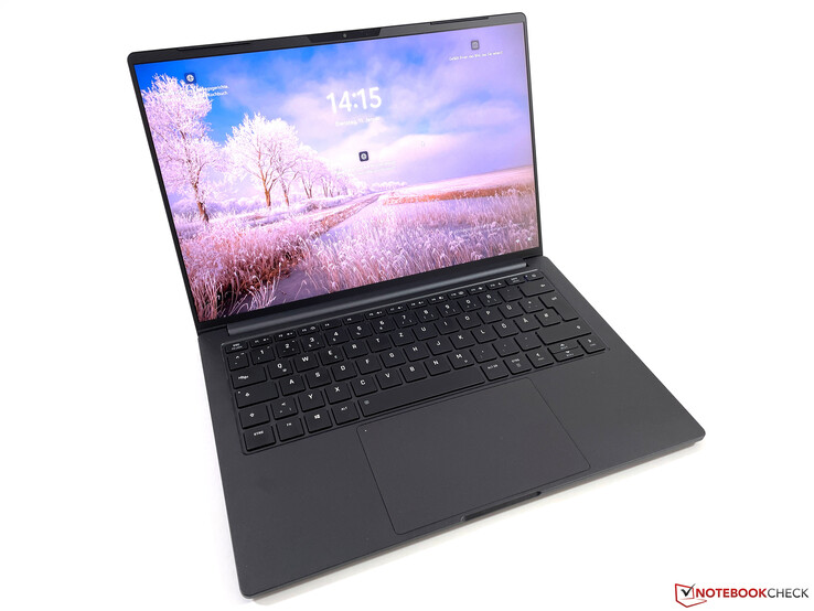 I princip är det svarta magnesiumfodralet identiskt med den första modellen avVision 14 som vi granskade. För mer information om fodralets kvalitet, anslutningsmöjligheterna och inmatningsenheterna hänvisar vi till vår detaljerade granskning från juni 2021. Det extra dedikerade grafikkortet och den andra fläkten ökar den bärbara datorns vikt med 99 gram till 1,127 kg, vilket fortfarande gör Vision 14 mycket lätt