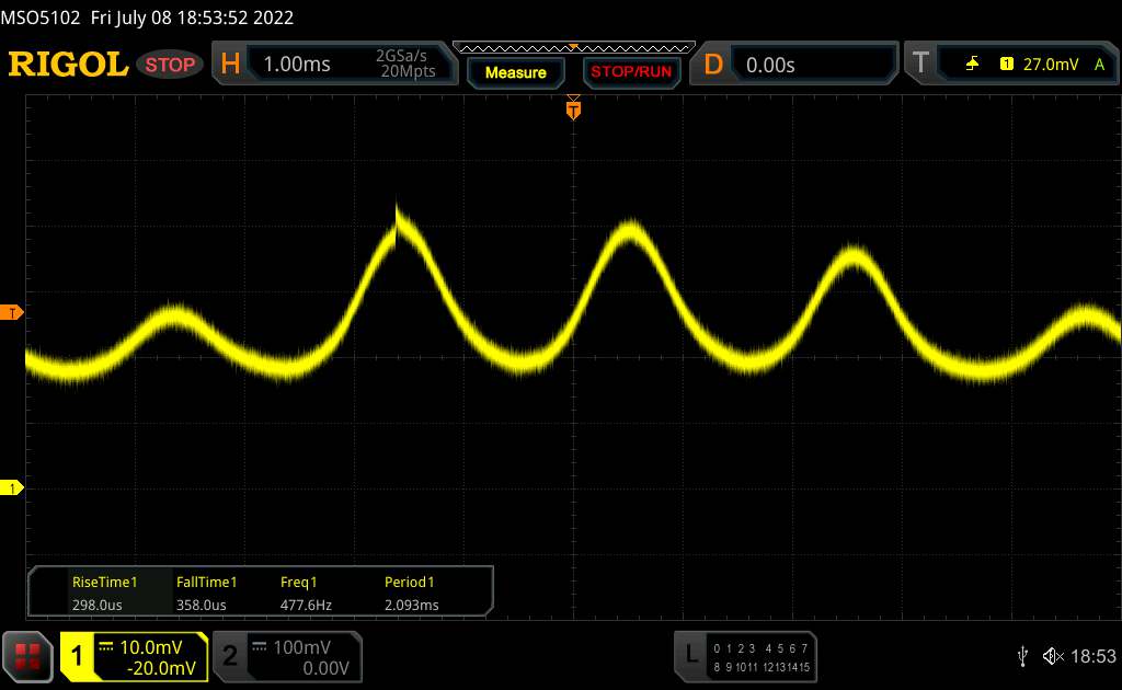 (+) | toppar är linjära (3.5% delta till föregående frekvens)