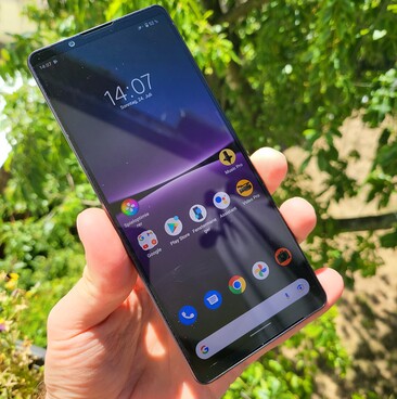 Den platta 6,5-tums OLED-panelen begränsas av tunna sidokanter, men storleksförhållandet mellan skärmen och enhetens framsida uppgår endast till 84,2 % eftersom de övre och nedre skärmkanterna är ganska stora. Samsungs Galaxy S22 Ultra, till exempel, använder den tillgängliga ytan mycket effektivare med över 90 procent. Sonys flaggskepp har åtminstone inte en notch eller ett stanshål på framsidan