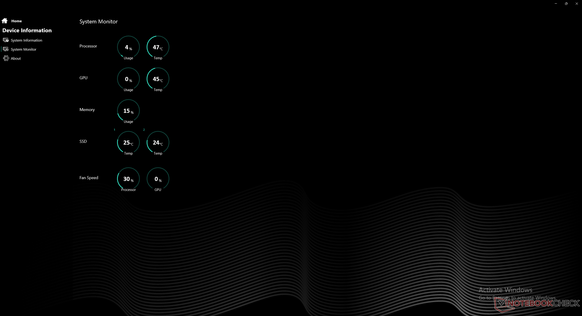 Om Prime95 körs för att stressa processorn skulle det resultera i en ökning av klockfrekvensen till 3,2-3,6 GHz och en stabil kärntemperatur på 80 C. CPU-paketets effekt skulle också stabiliseras på 75 W på obestämd tid, vilket är standardinställningen för TDP. Användare kan höja PL1- och PL2-gränserna upp till 120 W vardera via Control Center om de så önskar.