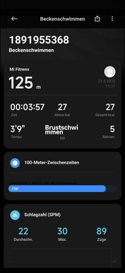 Dessutom är enskilda toppar märkbara i Xiaomis hastighetsmätning. Vid sidan av ett antal rimliga värden fanns det enskilda toppar med omöjliga värden i nästan alla träningspass, till exempel en topphastighet på 58,9 km/h vid vandring. GPS:en lämnar alltså ett blandat intryck. Tyvärr erbjuder Xiaomi Watch S1 ingen navigationsapp och det går inte heller att exportera eller importera GPS-data.
