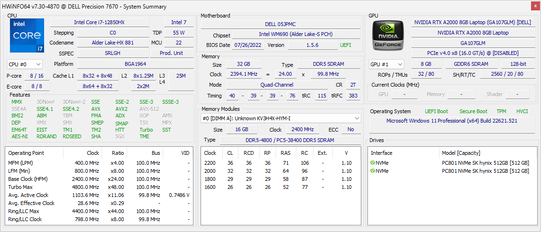 Recension av arbetsstationen Dell Precision 7670 - Debut för Core i7-12850HX och CAMM RAM
