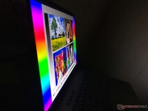 Totalt sett är det bara Apple's MacBook Pro 16 med sin egen Mini LED-skärm som kommer i närheten av skärmkvaliteten. OLED-paneler, som i Gigabyte Aero 16, är inte tillräckligt ljusstarka för DisplayHDR 1000. Å andra sidan uppvisar mini-LED "blooming" (det vill säga ljuset från ljusa lysdioder lyser in i omgivande, mörkare innehåll, vilket liknar bakgrundsbelysning, eftersom lokala dimmzoner är större än pixlar) i vår granskningsenhet, men detta är något mindre uttalat än i MacBook eller iPad Pro 12.9 med M1-chipet. PWM är något som vi hittills alltid har observerat i mini-LED-skärmar, men den mycket höga frekvensen på 7 400 MHz bör inte innebära några problem, inte ens för känsliga användare.