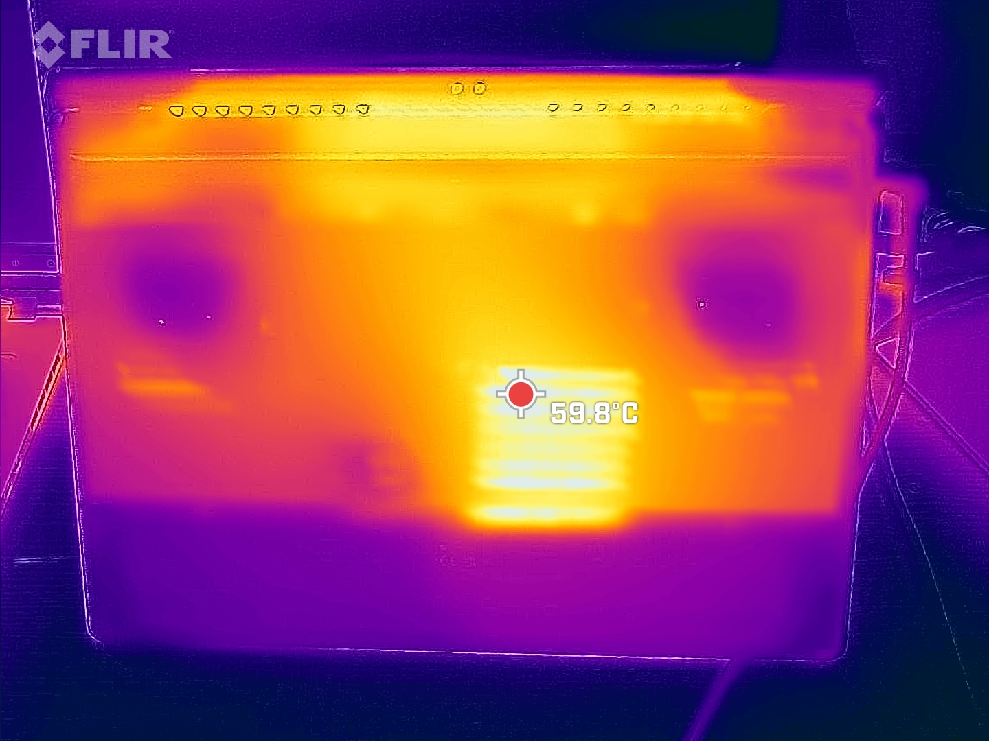 (-) Den maximala temperaturen på ovansidan är 50 °C / 122 F, jämfört med genomsnittet av 40.4 °C / 105 F , allt från 21.2 till 68.8 °C för klassen Gaming.
