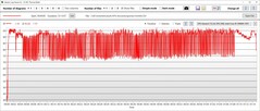 CPU-klockan fluktuerade mellan 2,2 och 4 GHz i stresstestet, varvid klockfrekvenserna ligger runt den övre gränsen under en längre tid. Parallellt med detta varierar CPU:ns strömförbrukning och ligger i genomsnitt på 77 watt. Den kan dock också gå upp till 120 watt och sjunka igen till 40 watt. Beroende på de andra värdena fluktuerar temperaturerna på ett liknande sätt där CPU:n värms upp till 98 °C och ligger i genomsnitt på 88 °C.