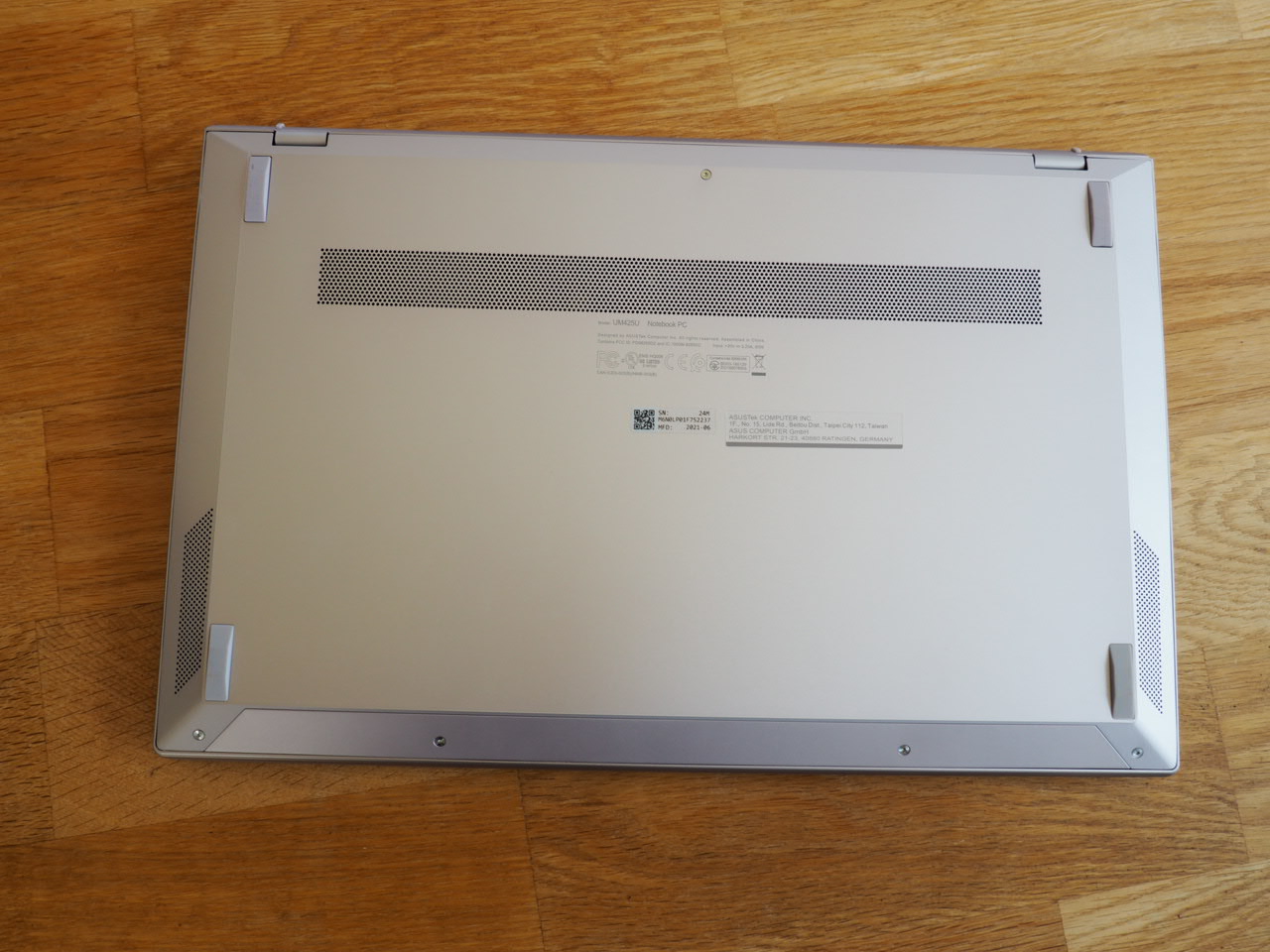 Förutom portarna (AMD-varianten får klara sig utan Thunderbolt), den "interna färgen" och tangentbordsspråket är väskans konstruktion identisk med den redan recenserade ZenBook 14 UX425EA. Därför kommer vi inte att gå in på mer detaljer om höljet, portarna och inmatningsenheterna i den här artikeln. Du kan hitta motsvarande information i länkade recensionen