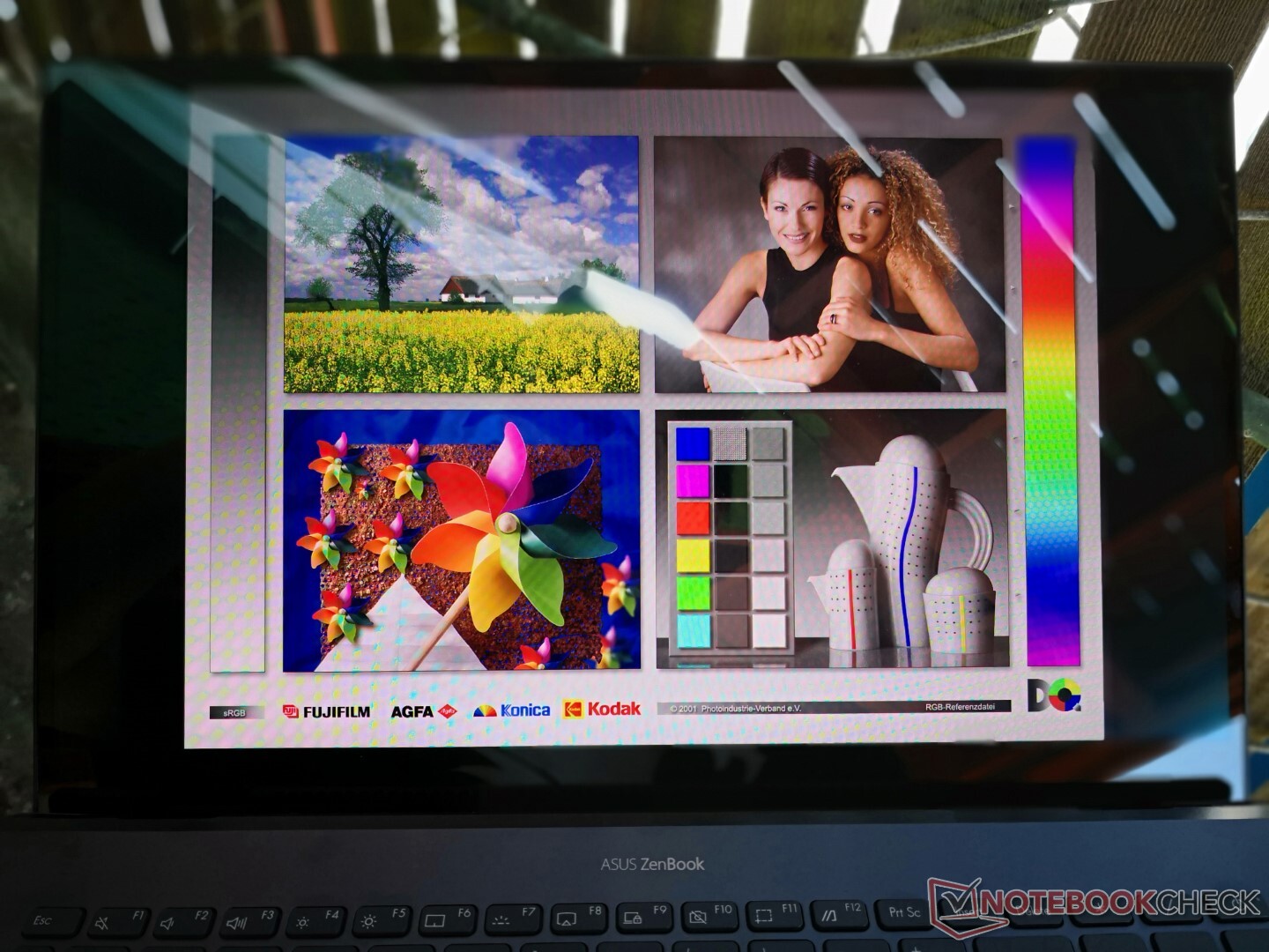 Asus använder samma 1080p 60 Hz Samsung ATNA56YX03 OLED-panel i många av sina 15,6-tums bärbara datorer, inklusive VivoBook 15 KM513, VivoBook 15 Pro M3500QC, VivoBook 15 M513UA och Vivobook 15 K513EQ. Alla dessa bärbara datorer har alltså mycket liknande visuella egenskaper som extremt snabba svarstider och jämn fördelning av ljusstyrkan, djupa svartnivåer och goda maximala ljusstyrkanivåer. Dessa egenskaper gör att innehållet på en OLED-panel framträder mycket mer levande än på en typisk IPS-panel. Märkligt nog kan vi dock bara registrera en DCI-P3-täckning på bara 79 procent även efter att vi försökt justera standardfärgerna via MyAsus mjukvara. Tillverkaren annonserar full DCI-P3-täckning och vi har bekräftat detta på alla ovannämnda VivoBook laptops, vilket kan tyda på att det kan finnas en bugg här i hur färgprofilerna fungerar mellan Asus inställningar och Windows-inställningarna.