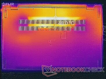 När man spelar eller kör högre belastning kan värmepunkterna på ovansidan och undersidan uppgå till 35 C respektive 48 C, jämfört med 44 C respektive 49 C på ovannämnda Dell. Asus design gör ett bra jobb med att hålla den övre ytan mycket svalare än den nedre ytan för bekvämare handflator och fingrar.